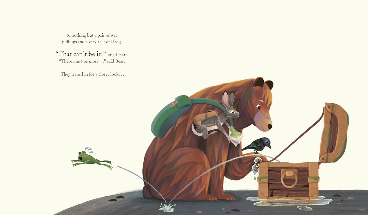 Join Hare as she sets off to find the treasure, hoping for an exciting adventure. On the way, she meets Bear, whose dream is to make friends, and Bird, whose dream is to overcome shyness. But when they eventually get to the top and find the treasure, they realize that they’ve already found what they’re looking for.