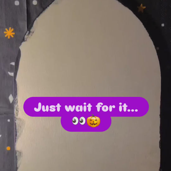 Painted on a uniquely arched wood panel, it blends cozy folk-art warmth with a touch of Halloween wonder. The deep violet sky, amber tones, and glowing highlights make it a perfect addition for collectors who love moody, nature-inspired art that tells a story.